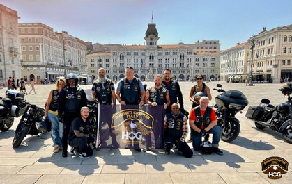 E sulla via del ritorno? Sosta d’obbligo a Trieste, in piazza Unità d’Italia, Harley schierate e scatto epico!